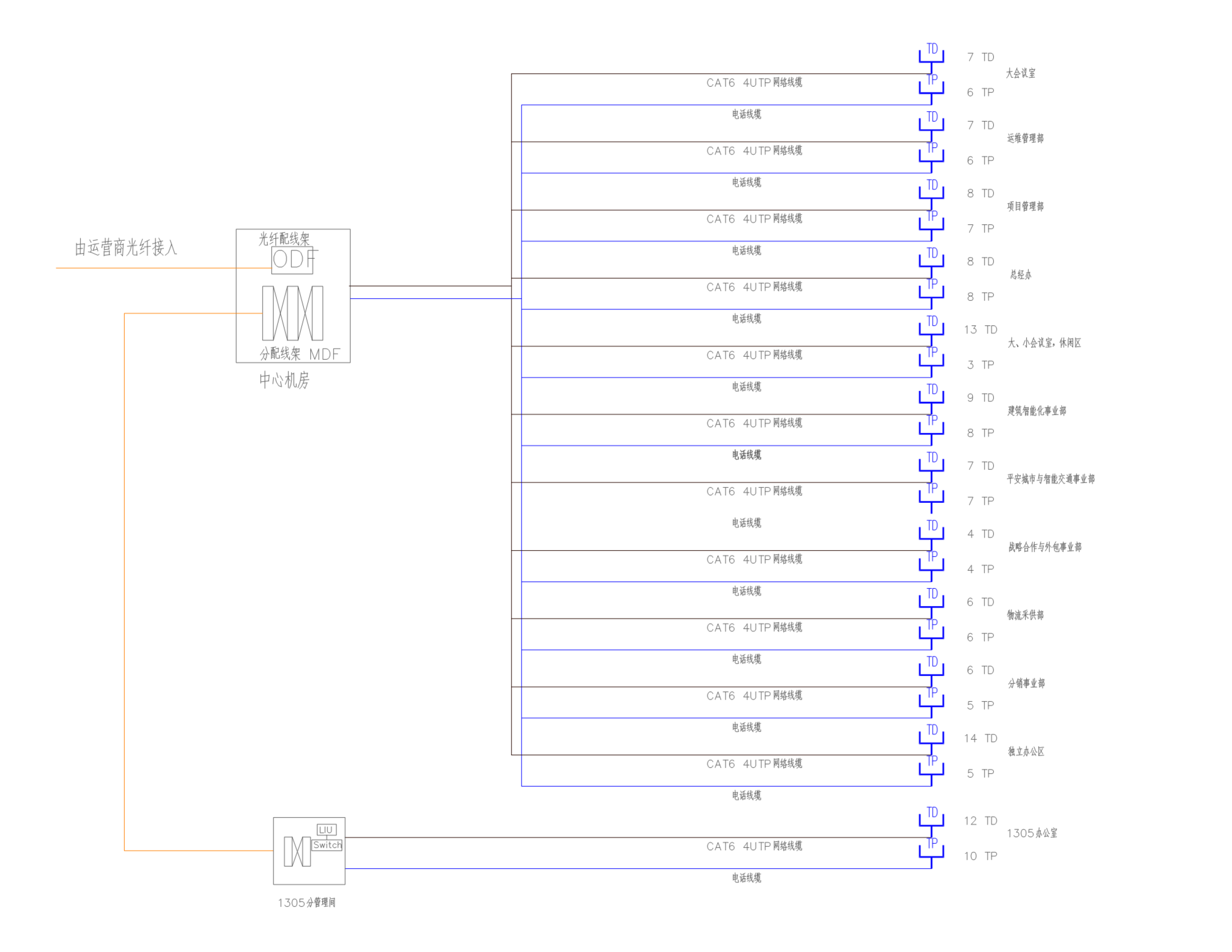 作為現(xiàn)代商務(wù)辦公、技術(shù)實(shí)現(xiàn)、信息傳輸?shù)膱?chǎng)所寫字樓,是社會(huì)發(fā)展、技術(shù)進(jìn)步的重要標(biāo)志,建立高速、穩(wěn)定、安全的網(wǎng)絡(luò),是實(shí)現(xiàn)公司信息化管理系統(tǒng)的基礎(chǔ)。基礎(chǔ)物理層是網(wǎng)絡(luò)建設(shè)的重要組成部份,它將語(yǔ)音、數(shù)據(jù)、圖像等設(shè)備彼此集成相連;綜合布線系統(tǒng)應(yīng)具有開(kāi)放性、靈活性和擴(kuò)展性,并對(duì)其服務(wù)的設(shè)備具有一定的獨(dú)立性,它是實(shí)現(xiàn)建筑智能化系統(tǒng)集成的統(tǒng)一中央平臺(tái)。