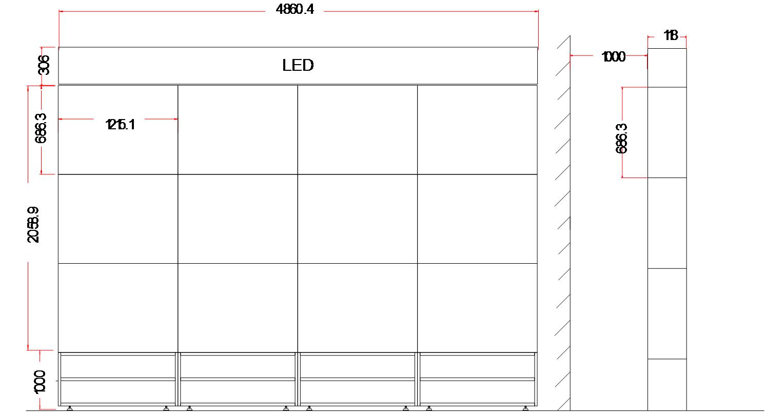 背后維護空間:默認1000mm,實際空間根據(jù)用戶現(xiàn)場以及拼墻高度確定