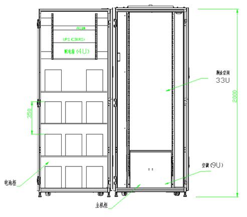 當(dāng)要求超長后備時(shí)間,例如1小時(shí),2小時(shí)等,如果主機(jī)柜內(nèi)部空間不夠,此時(shí)我們會(huì)配套一個(gè)外形跟主機(jī)柜類似的電池柜,它主要作用是放置后備電池,此電池柜前后側(cè)門各方面技術(shù)參數(shù)參數(shù)與主體機(jī)柜無異,保持外觀一致性,整潔美觀,只是機(jī)柜內(nèi)部不需要有冷熱封閉功能,不需要有監(jiān)控門及其天窗狀態(tài)等。